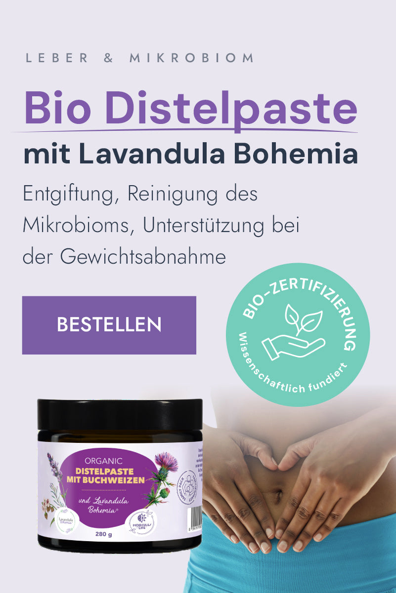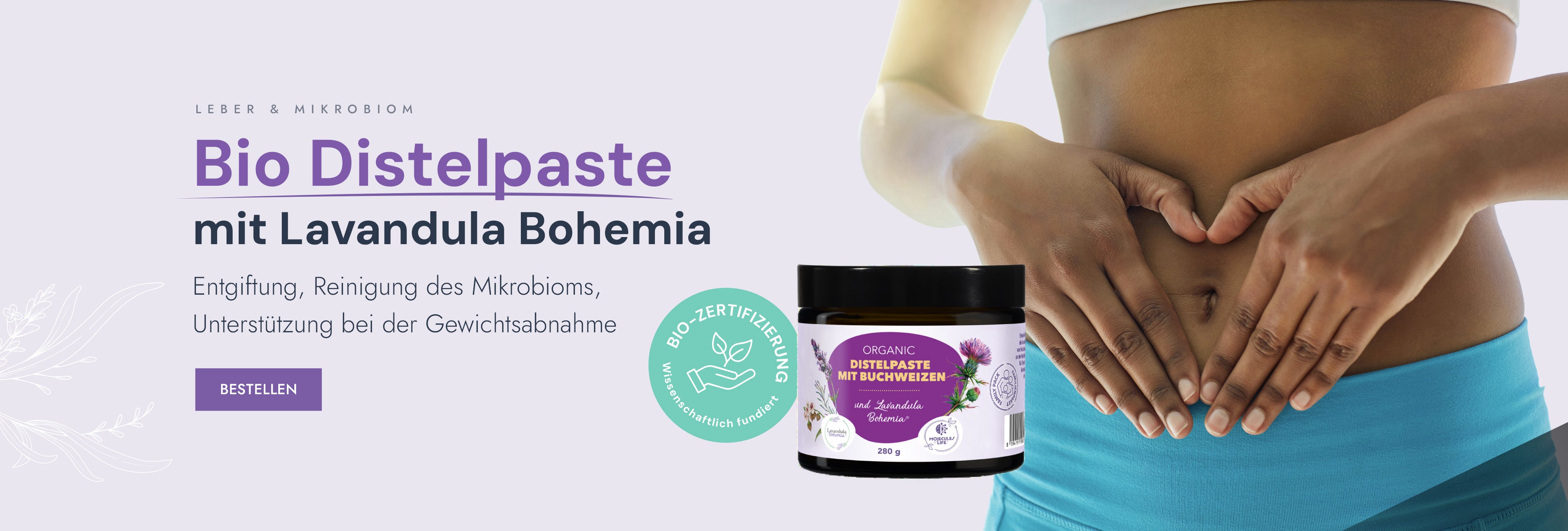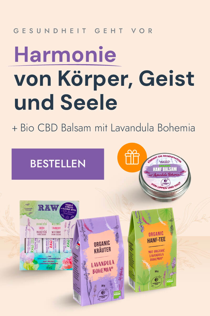 Unser Bio-Lavandula Bohemia ist reich an ätherischen Ölen, Flavonoiden und natürlichen Antioxidantien - wertvolle Pflanzenstoffe, die für ihre beruhigenden, antibakteriellen und regenerierenden Eigenschaften bekannt sind.